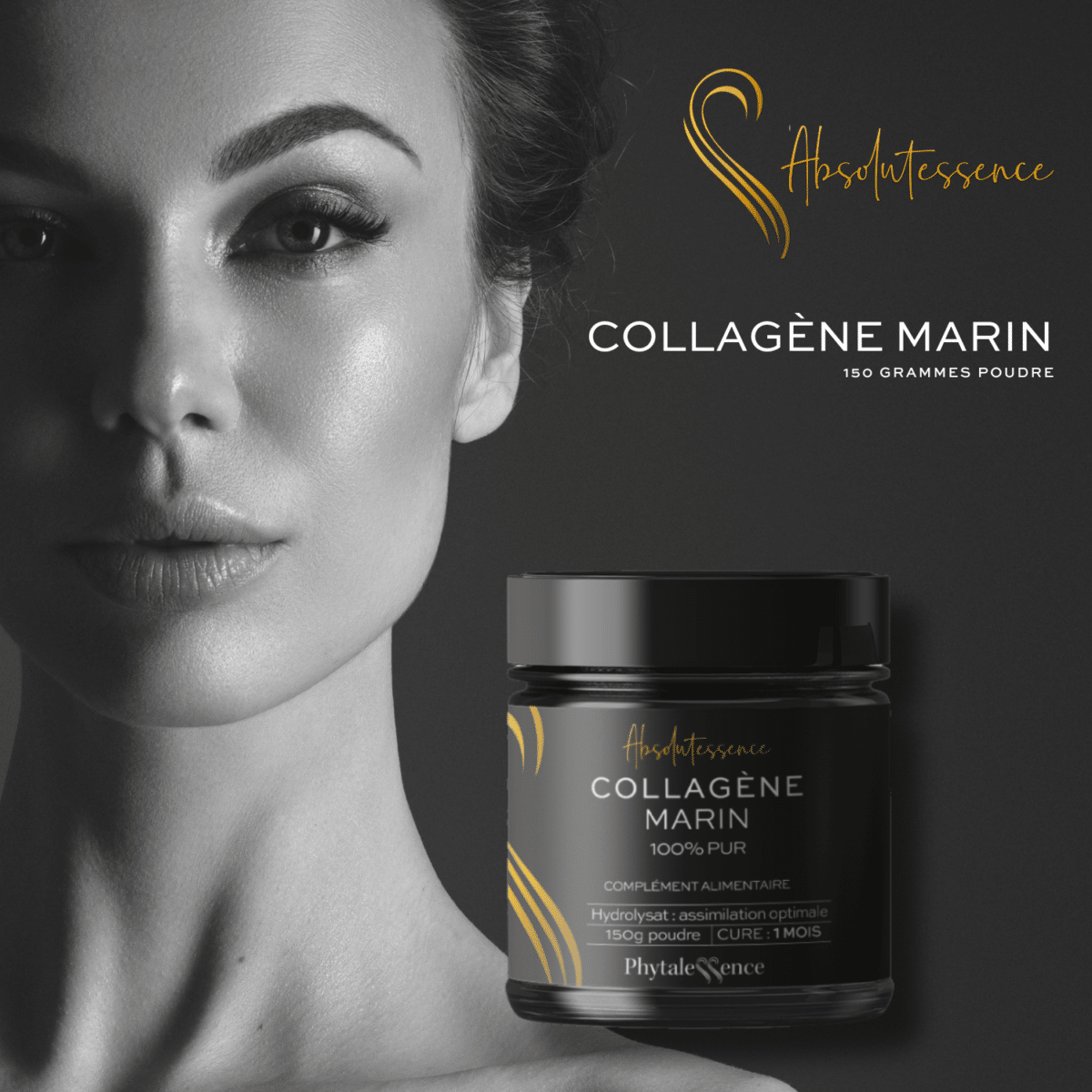 Boîte de 150 gr de poudre de Collagène Marin Absolutessence 100% pur
