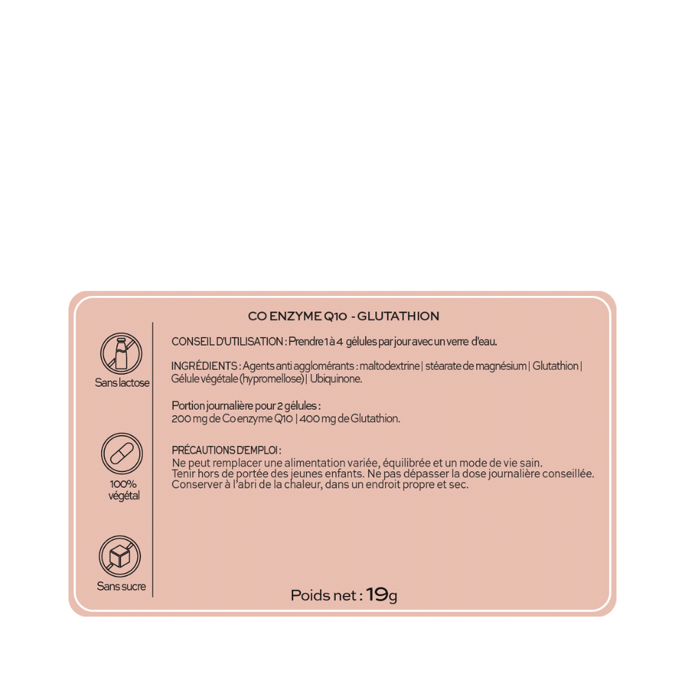 Pot de 40 gélules de Co Enzyme Q10-Glutathion, programme 20 jours