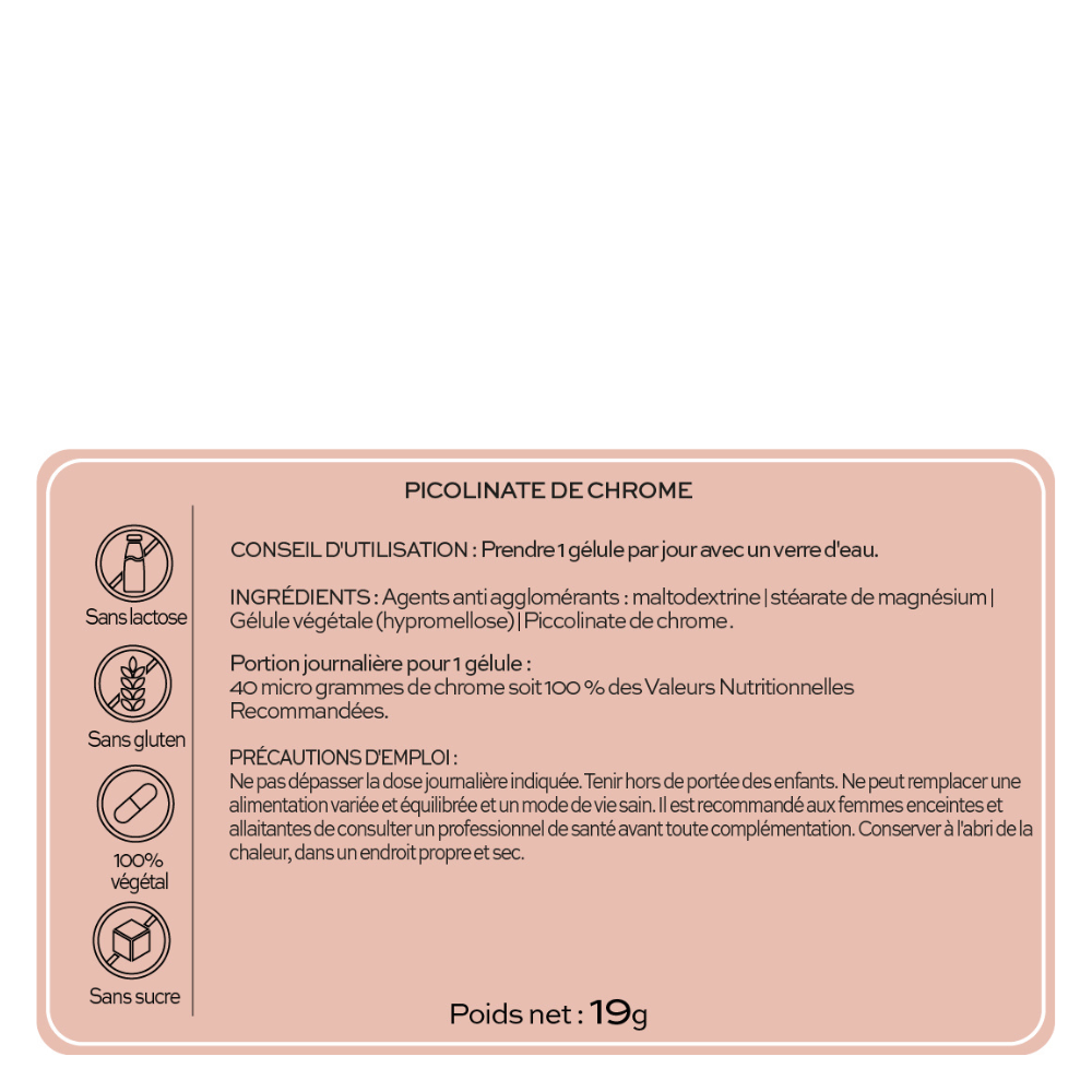 - 40 micro grammes de chrome soit 100% des Apports Journaliers Recommandés.