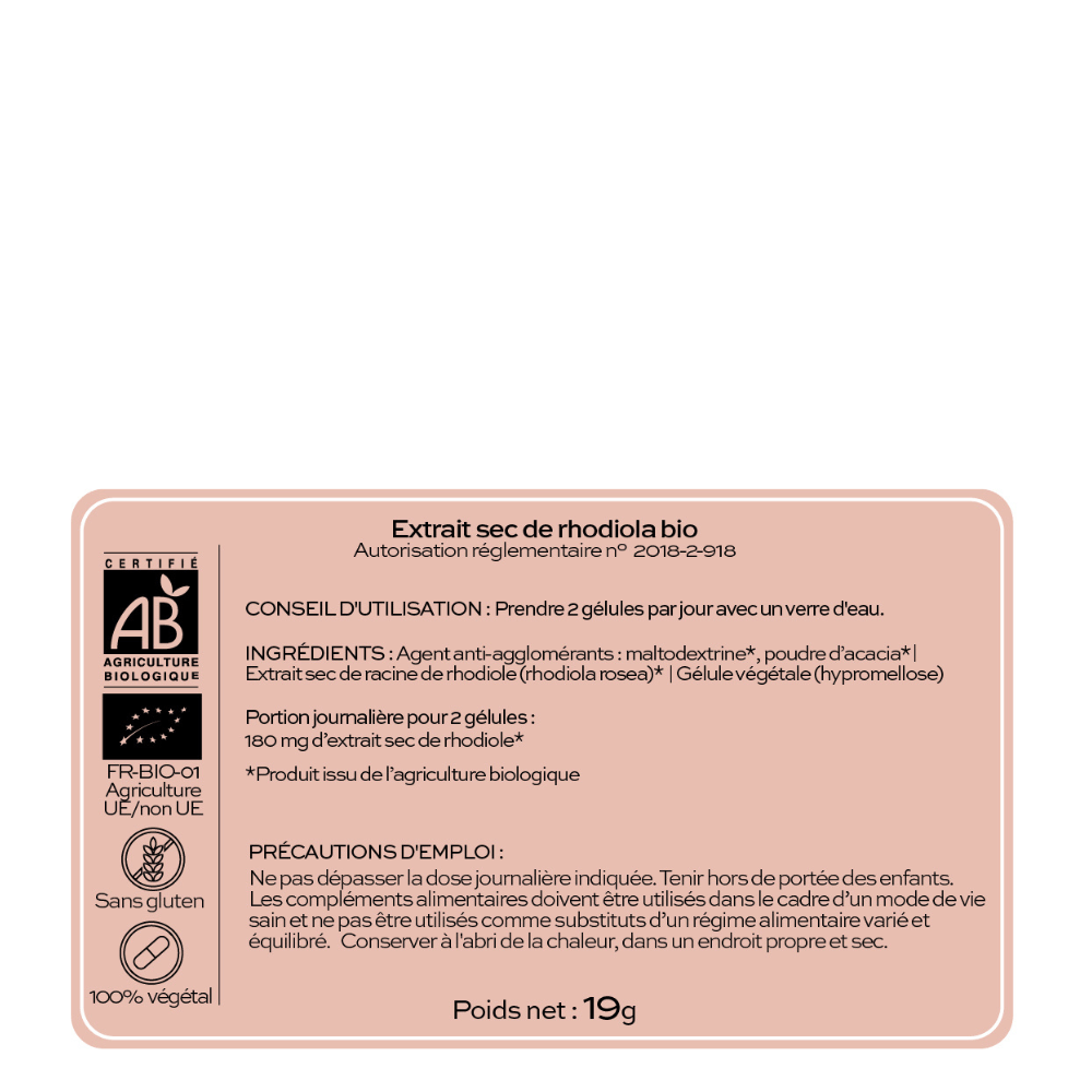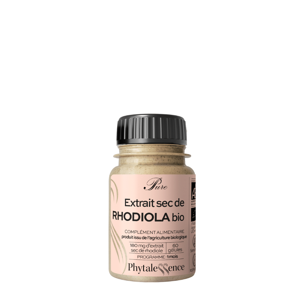 Pot de 60 gélules d’extrait sec de Rhodiola BIO.